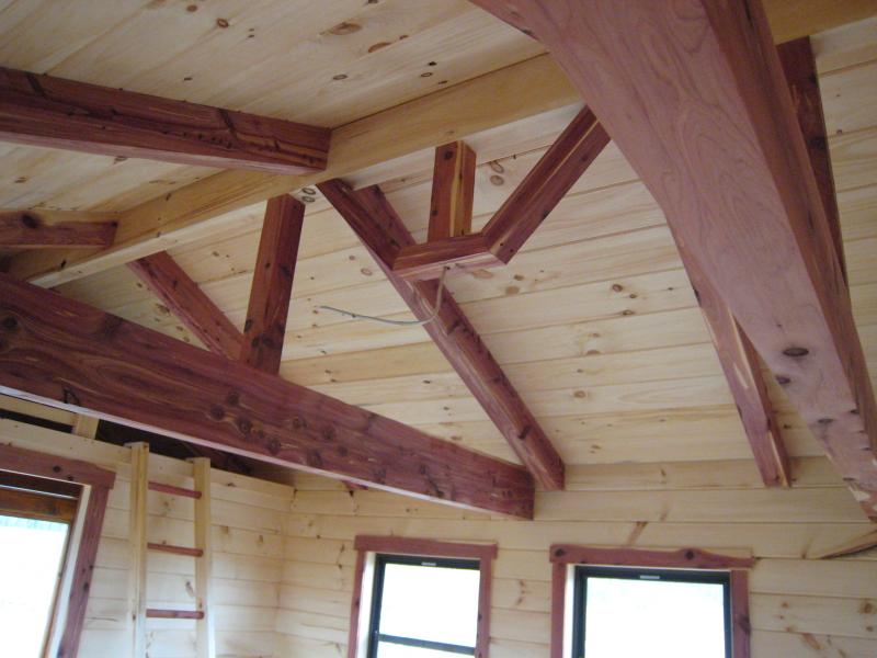 Optional; 2" roof, 4" X 6" Aromatic Eastern red cedar rafters & tie beam