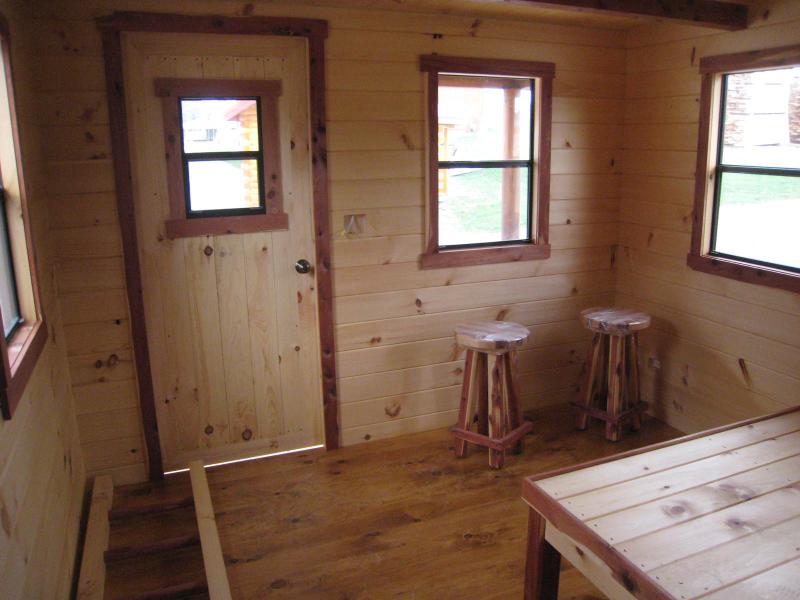 Aromatic Eastern red cedar interior trim accents around the windows & entry door are Standard on all cabins!