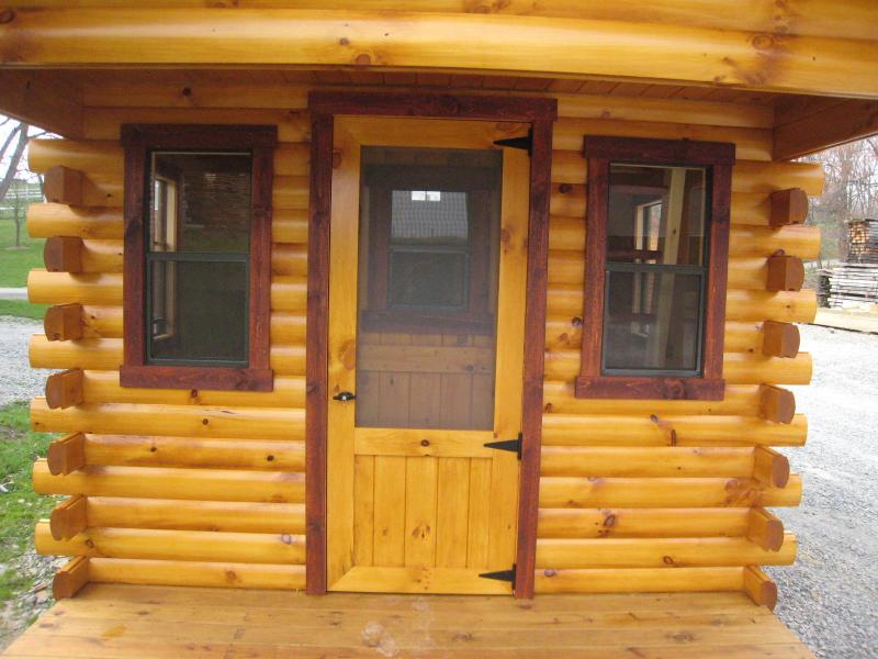 Promotion available on both Hunter & Lodge styles Promotion cabins come standard with 3 windows, Amish wood door, Tin roof & your choice of exterior stain color. Each Promotion cabin is custom built as are all Trophy Amish Cabins. You may draw your own layout, specifying window & door placement.